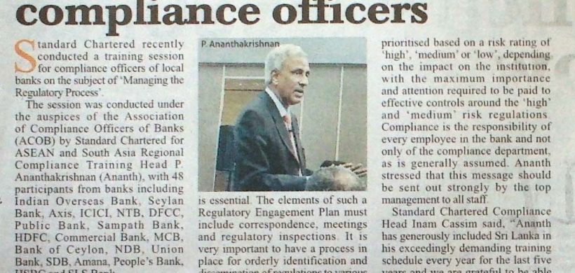 Emergence of the Association of Compliance Officers of Banks – Sri Lanka